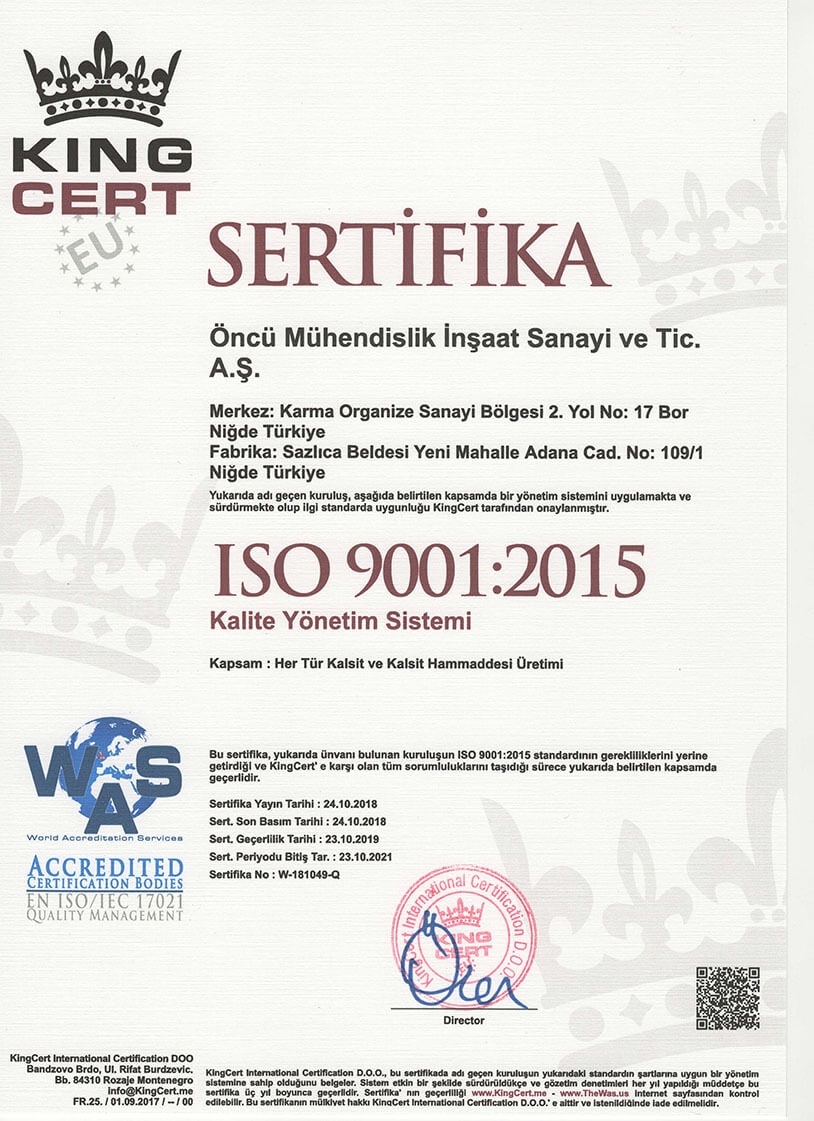 Öncü Şirketler Grubu Üretim Tesisleri Laboratuvarlarında bulunan son teknoloji test cihazlarıyla; hammaddeden başlayıp nihai ürüne kadar AFS aralıkları, beyazlık değerleri ve tane boyutu sürekli kontrol altında tutularak üretim yapılmaktadır.